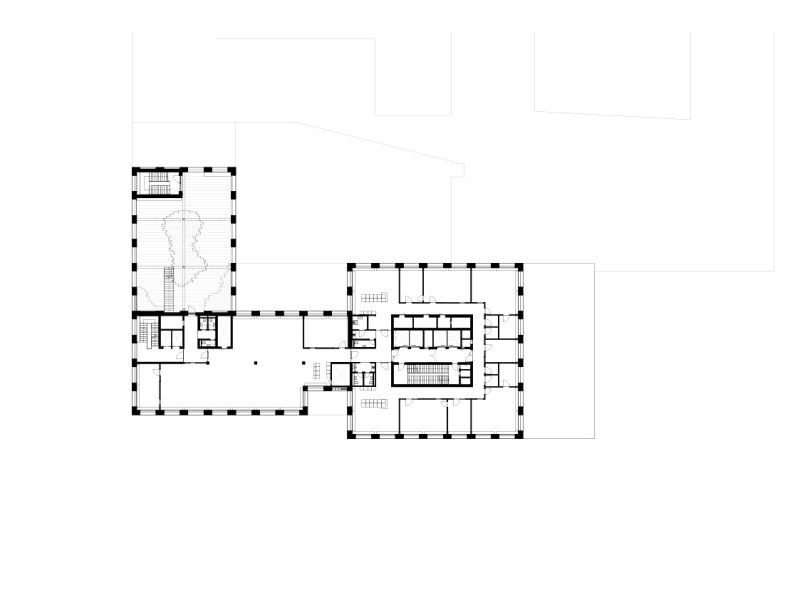 Besides the office spaces, also provides a restaurant, a café, informally shared workspaces, as well as meeting and event facilities that promote inspiration and community